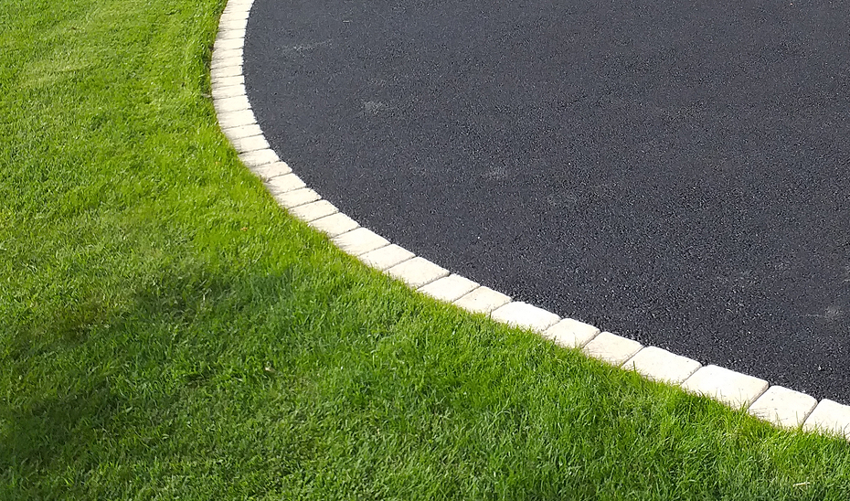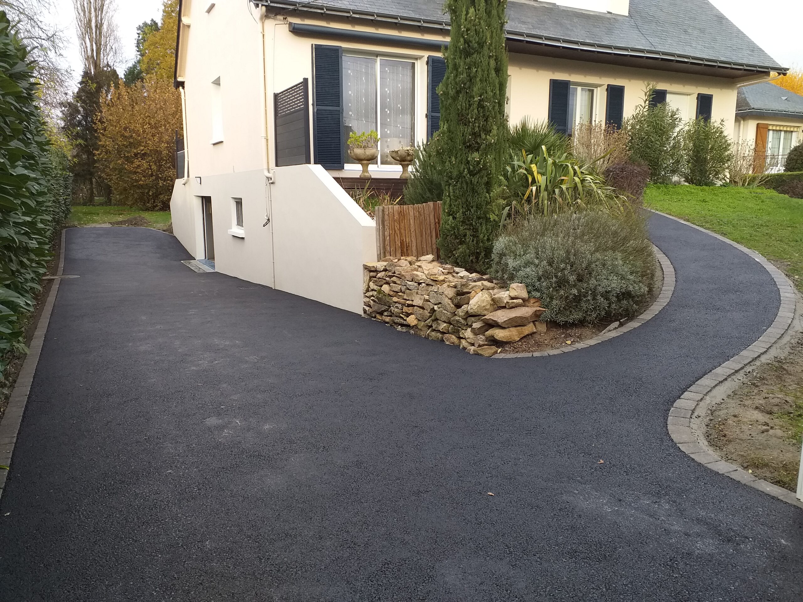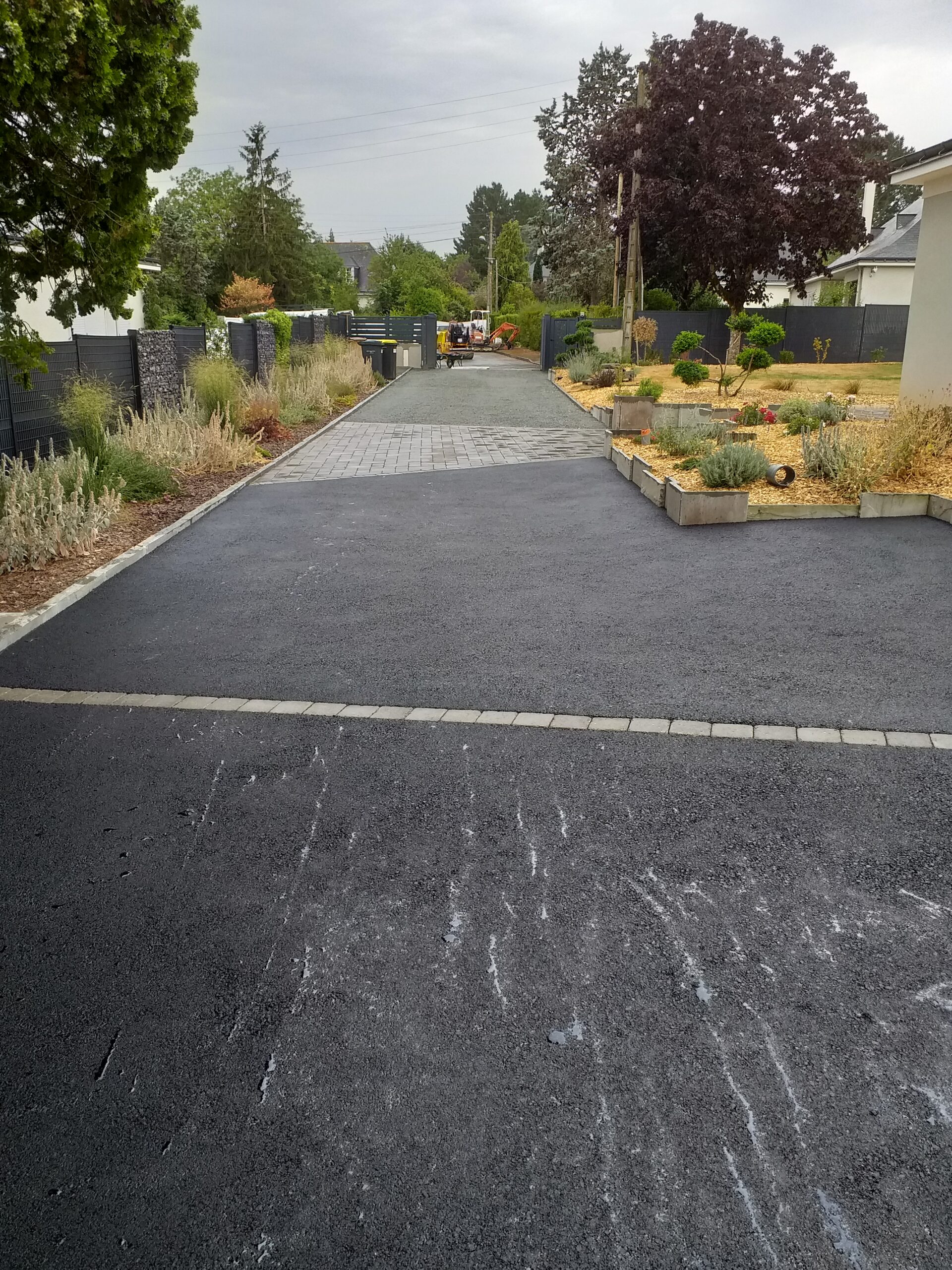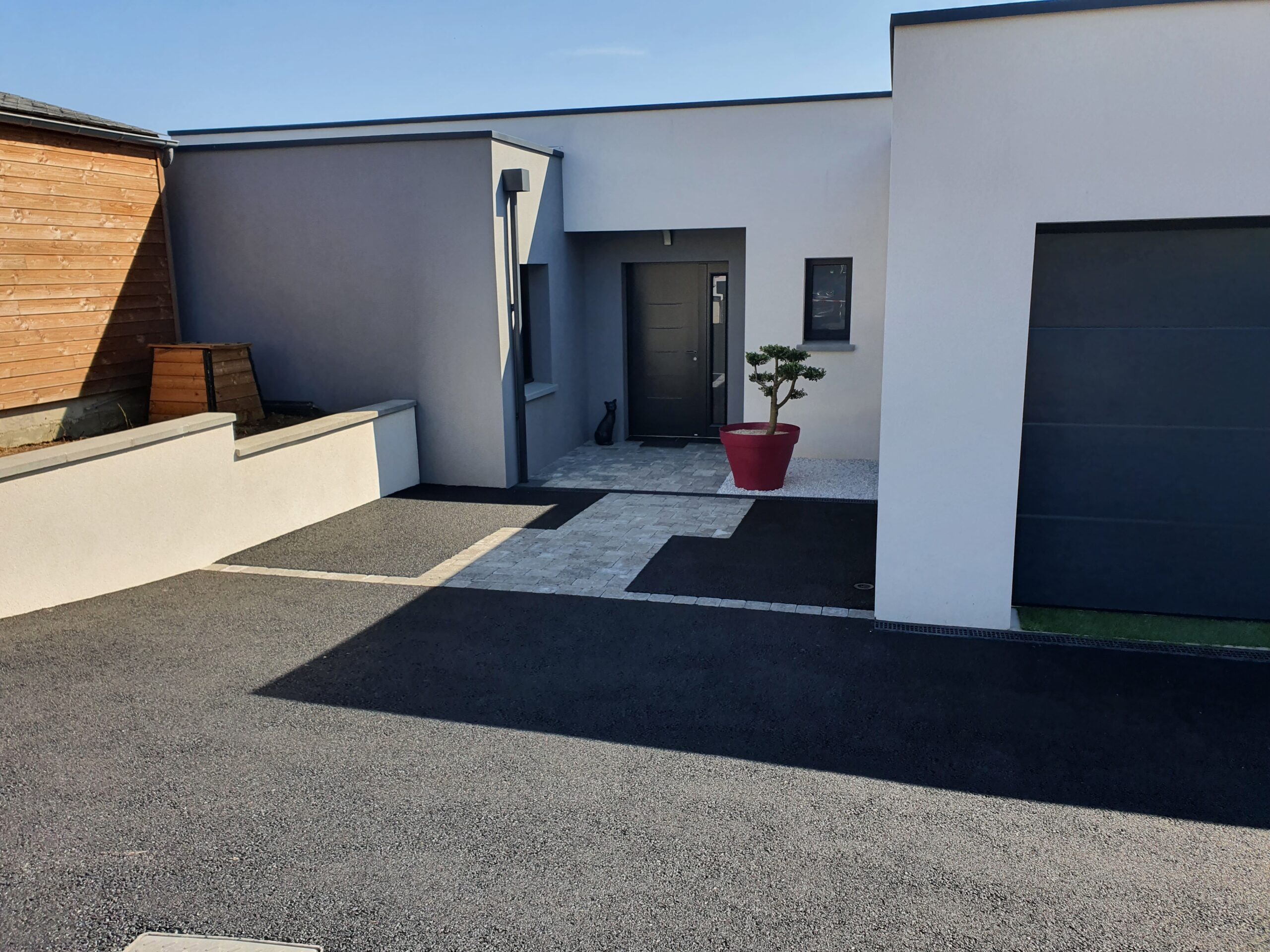 Création d’une grande cour en enrobé avec un motif pavé