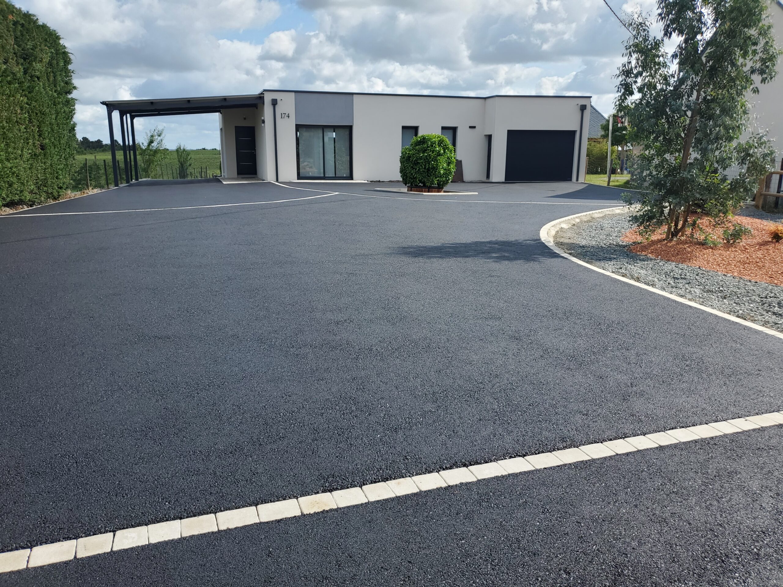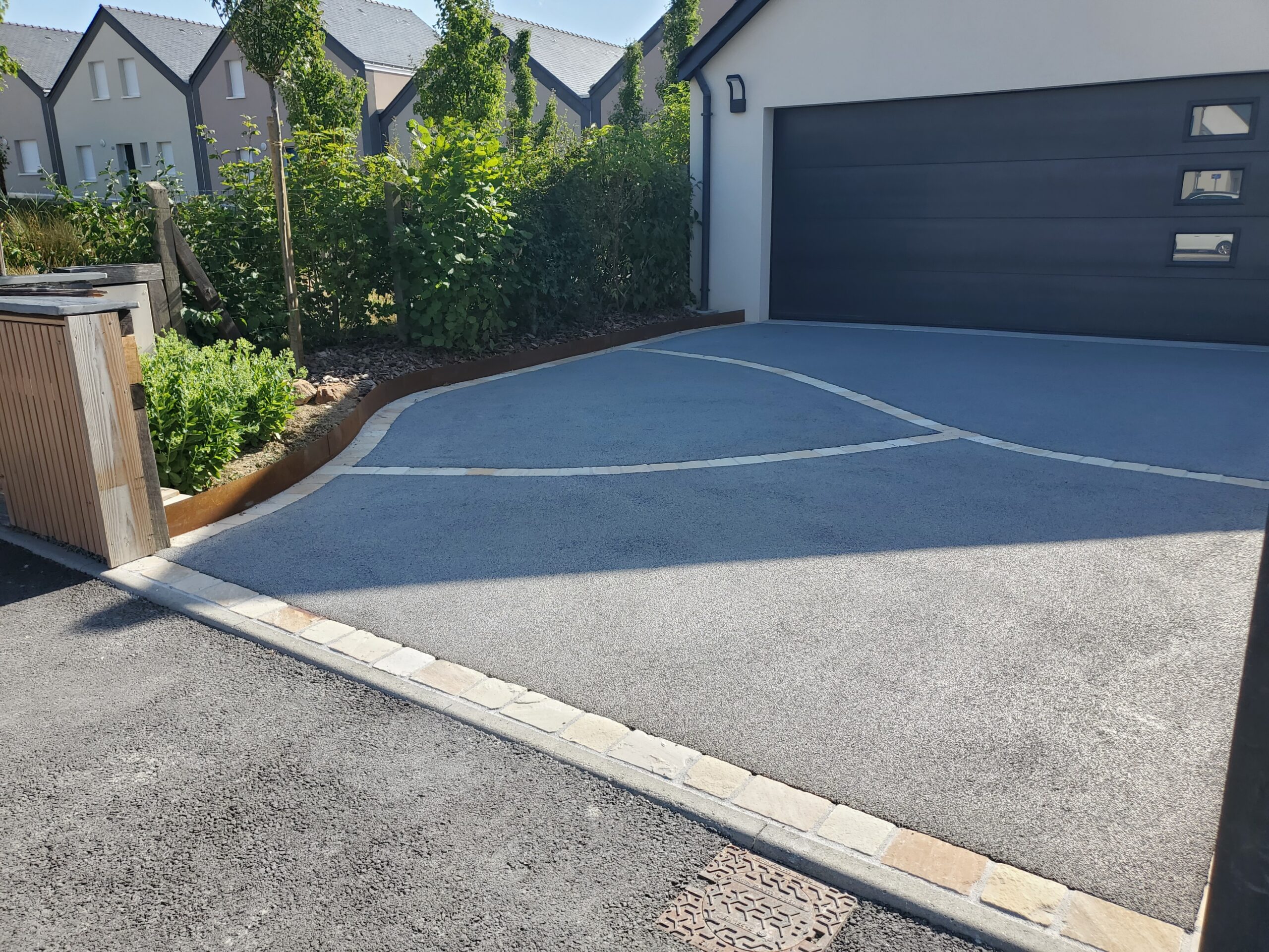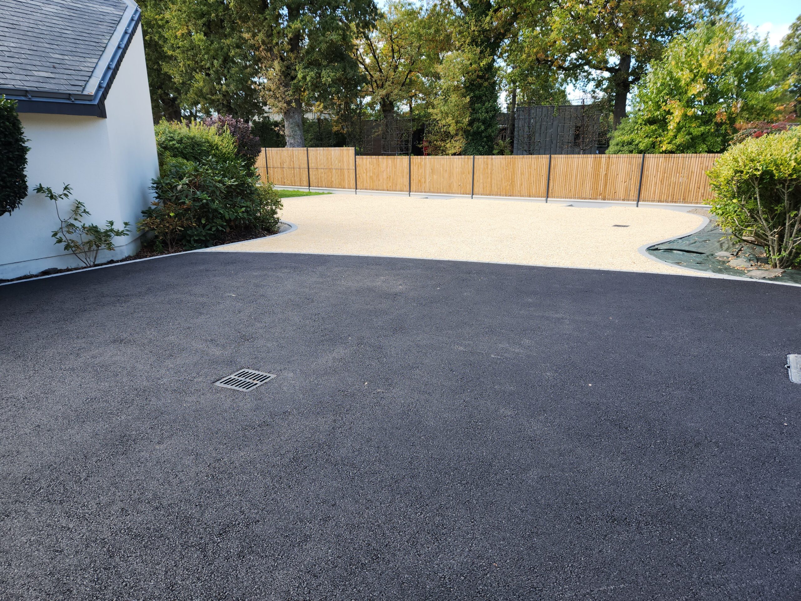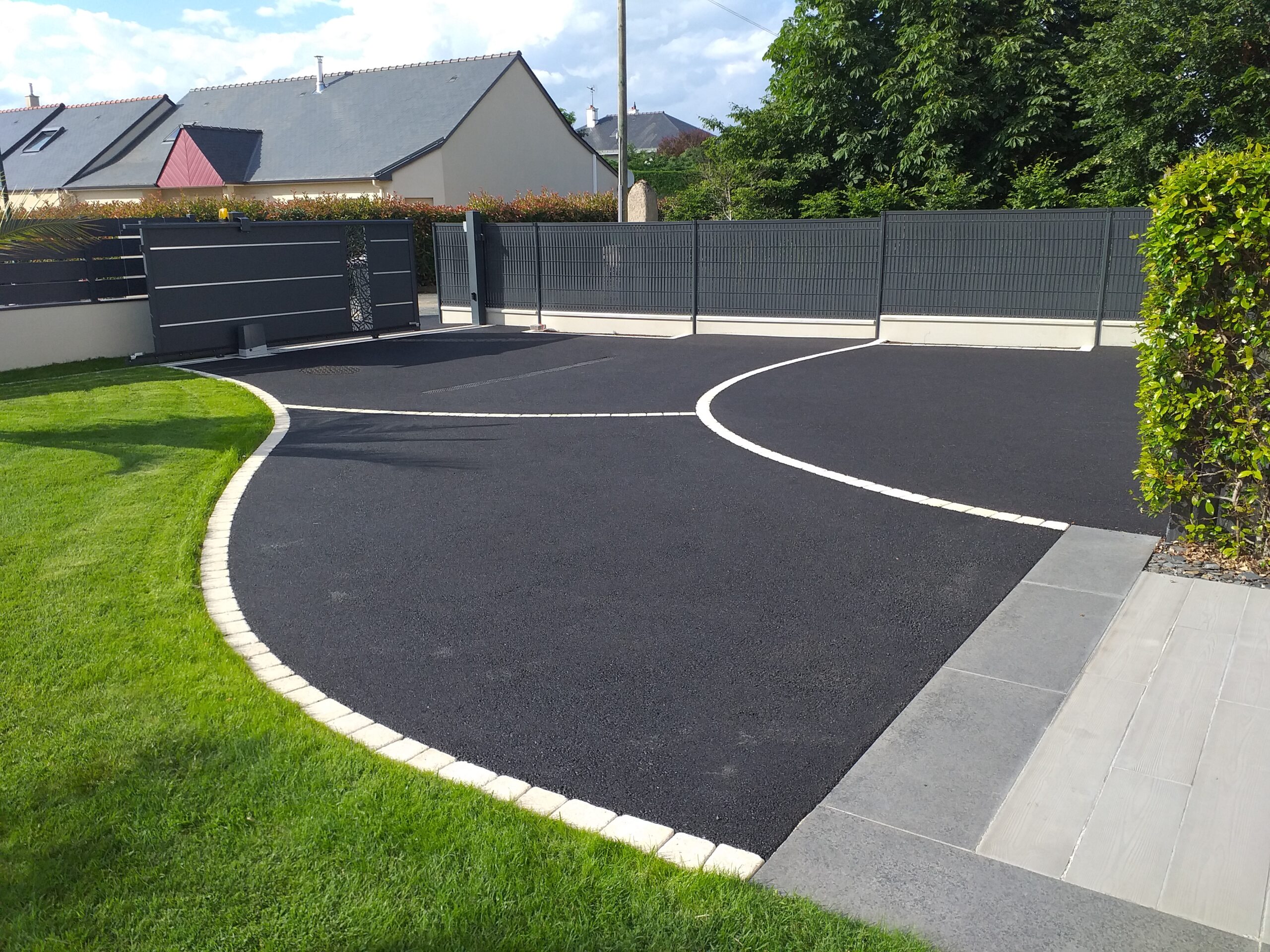 Réalisation d’un cour en enrobé avec des chainettes en grès des Indes