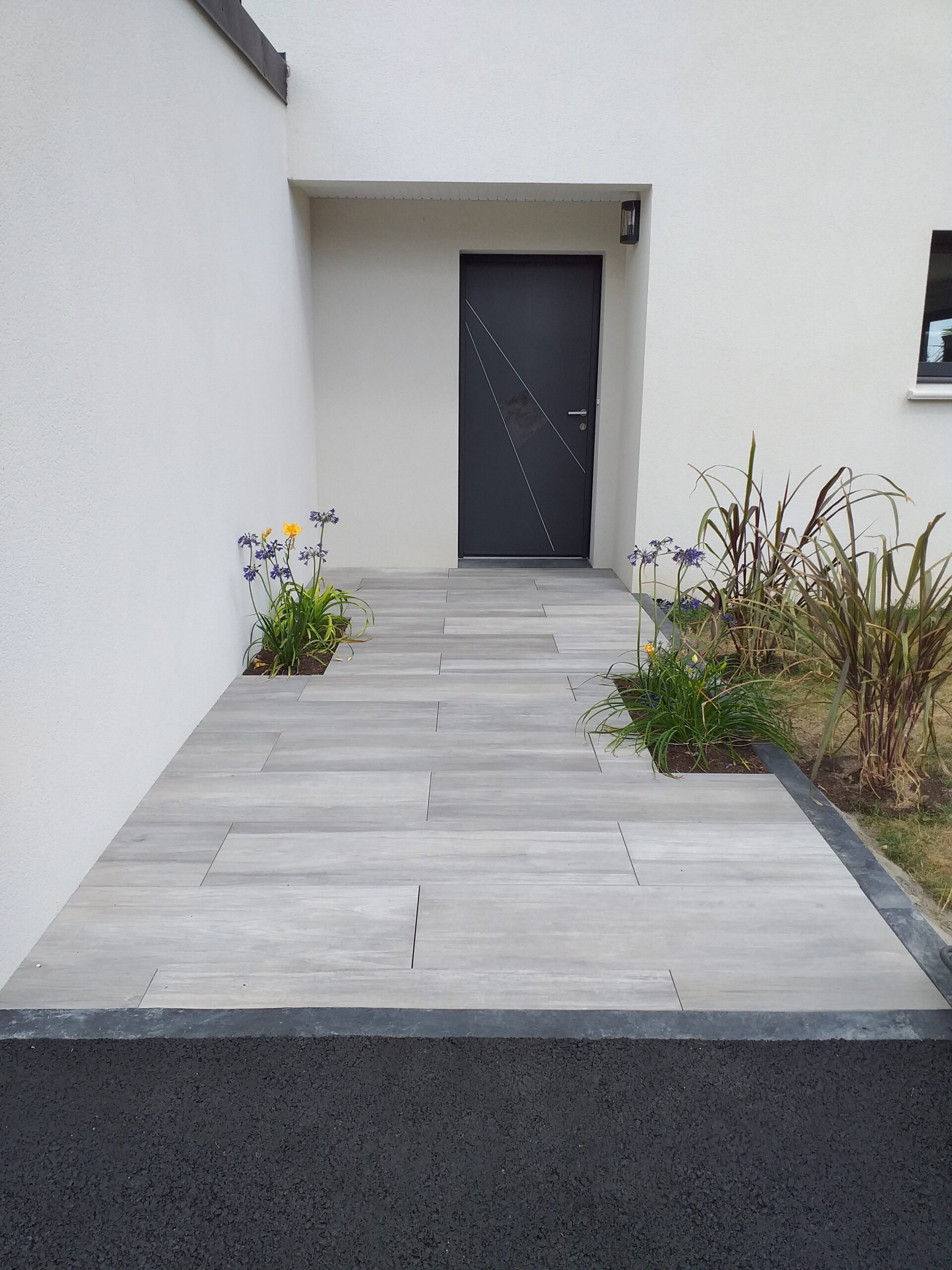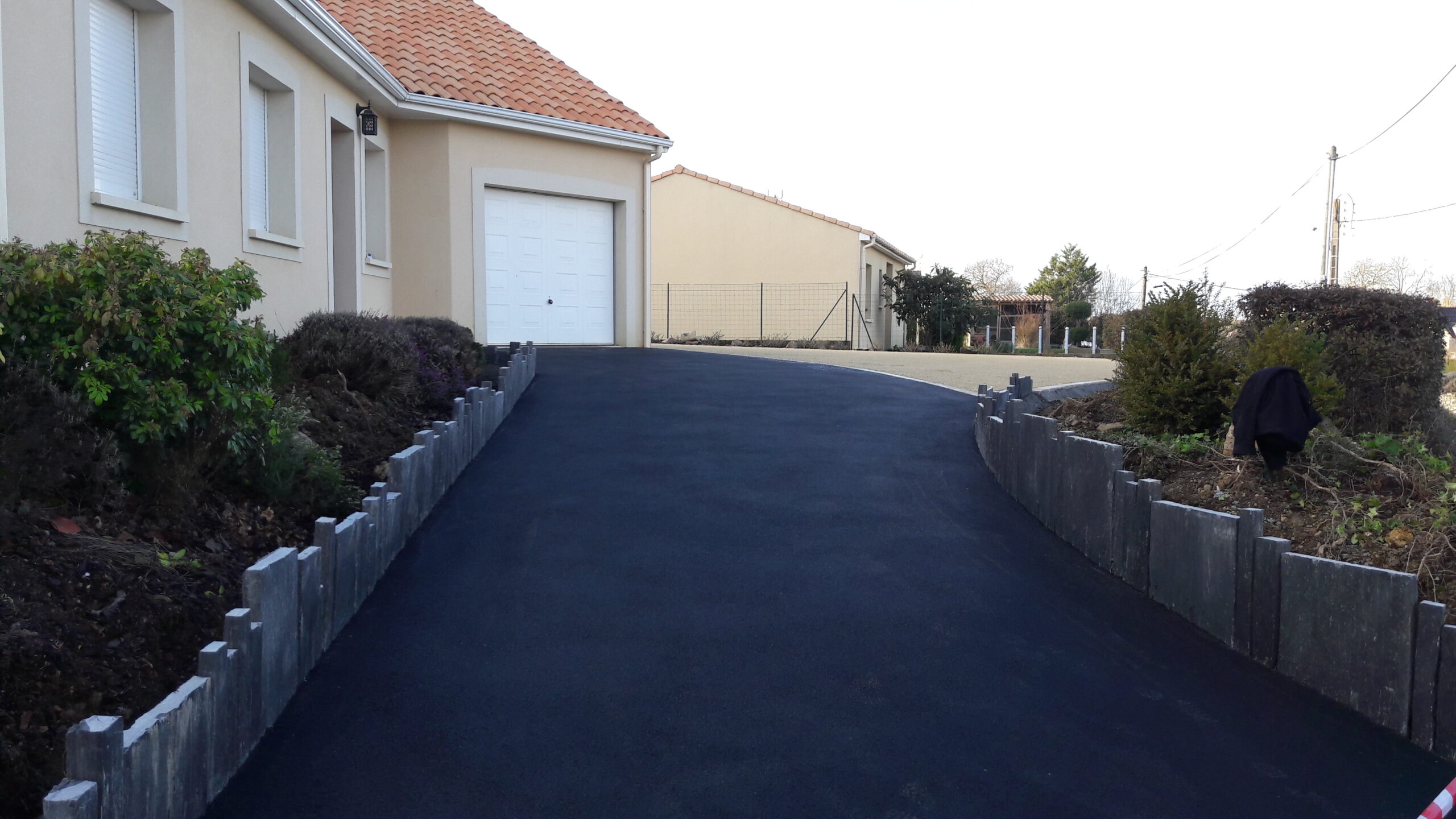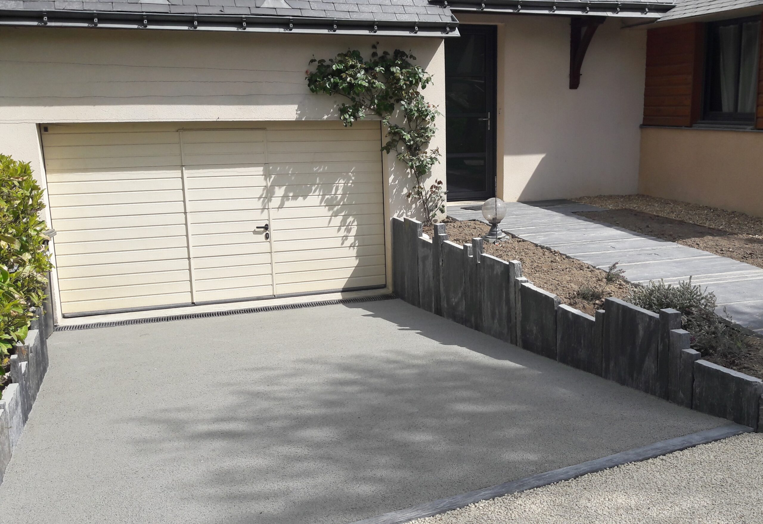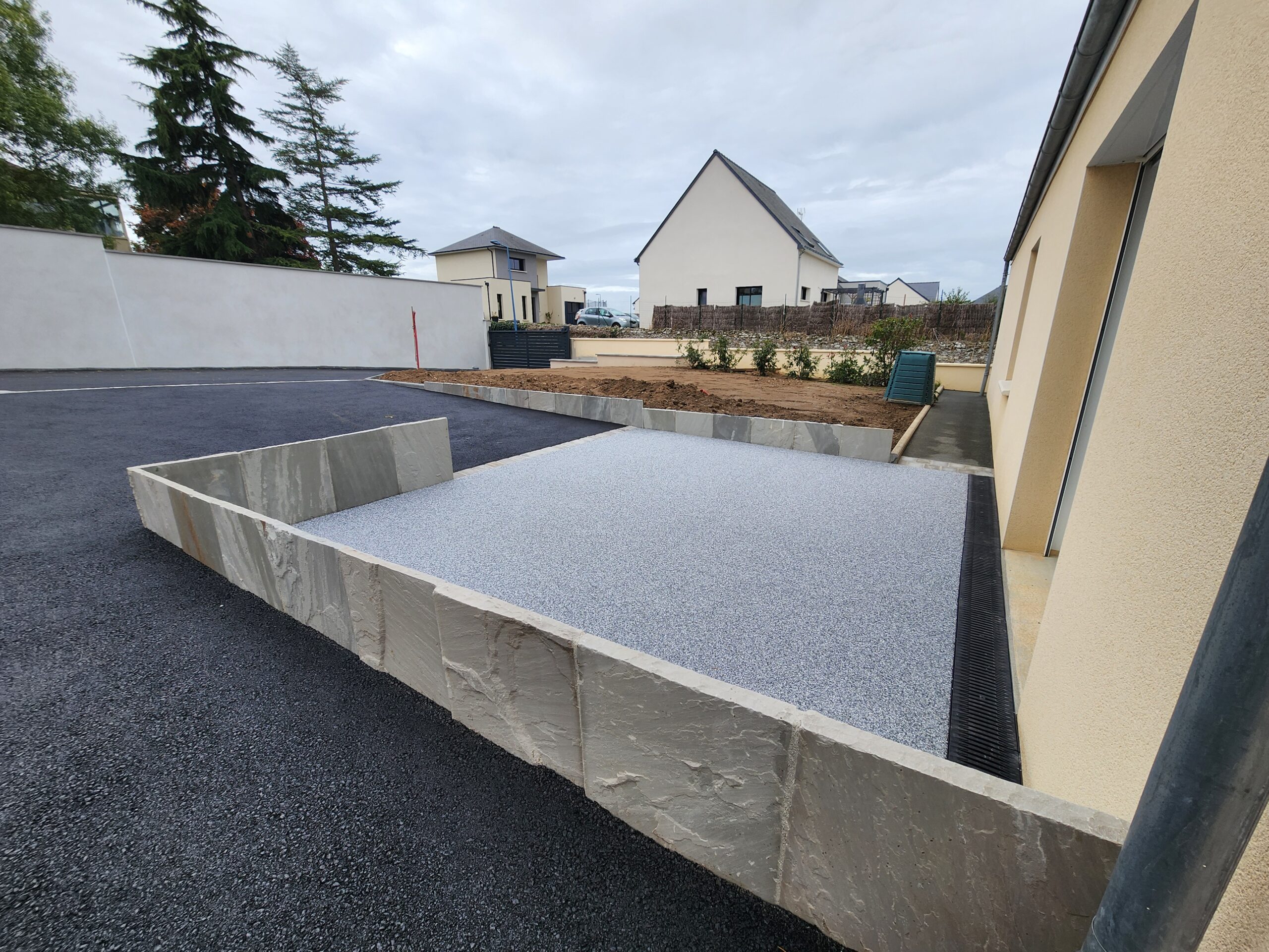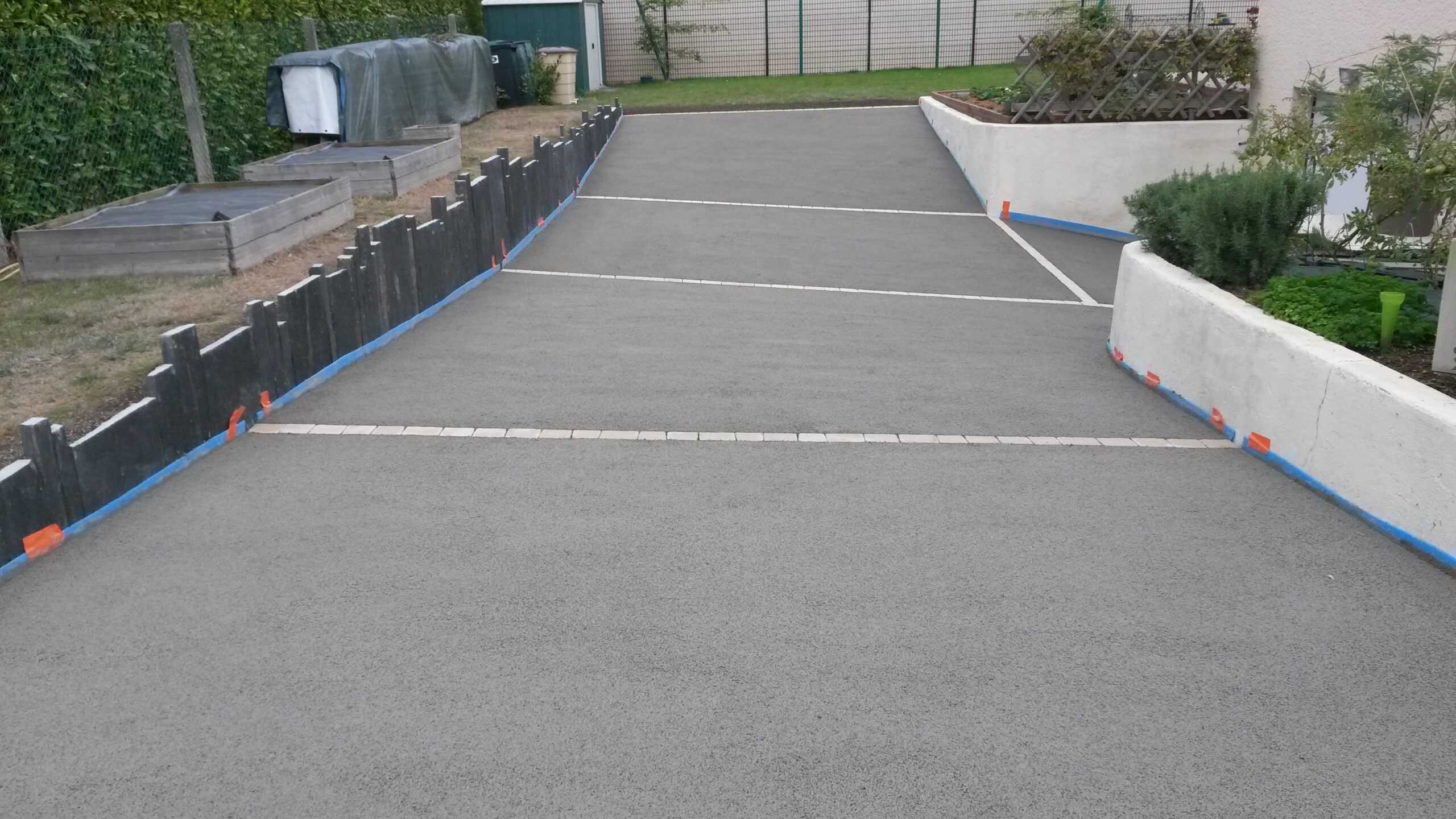Réalisation d’un cour en enrobé avec des chainettes en grès des Indes