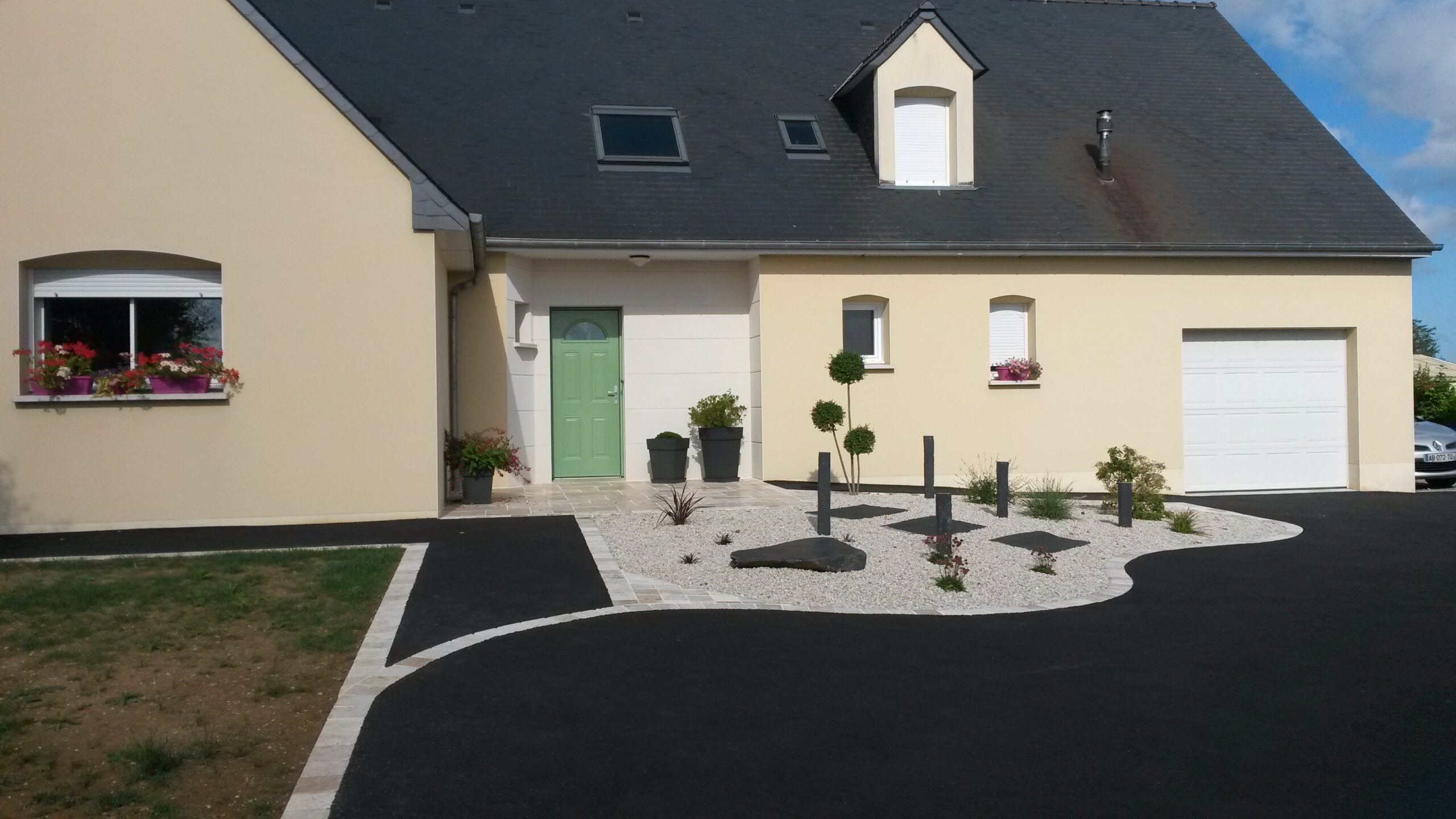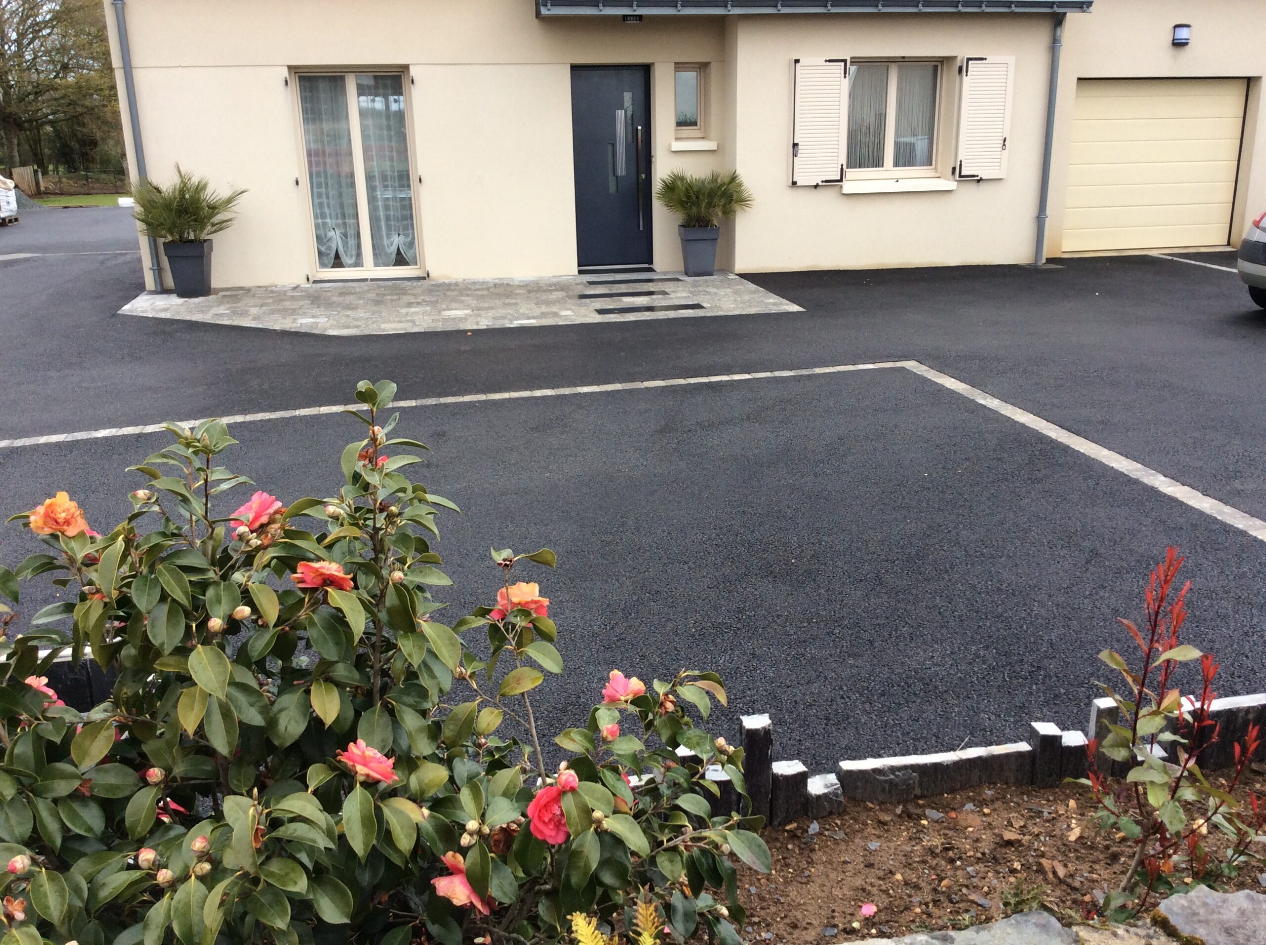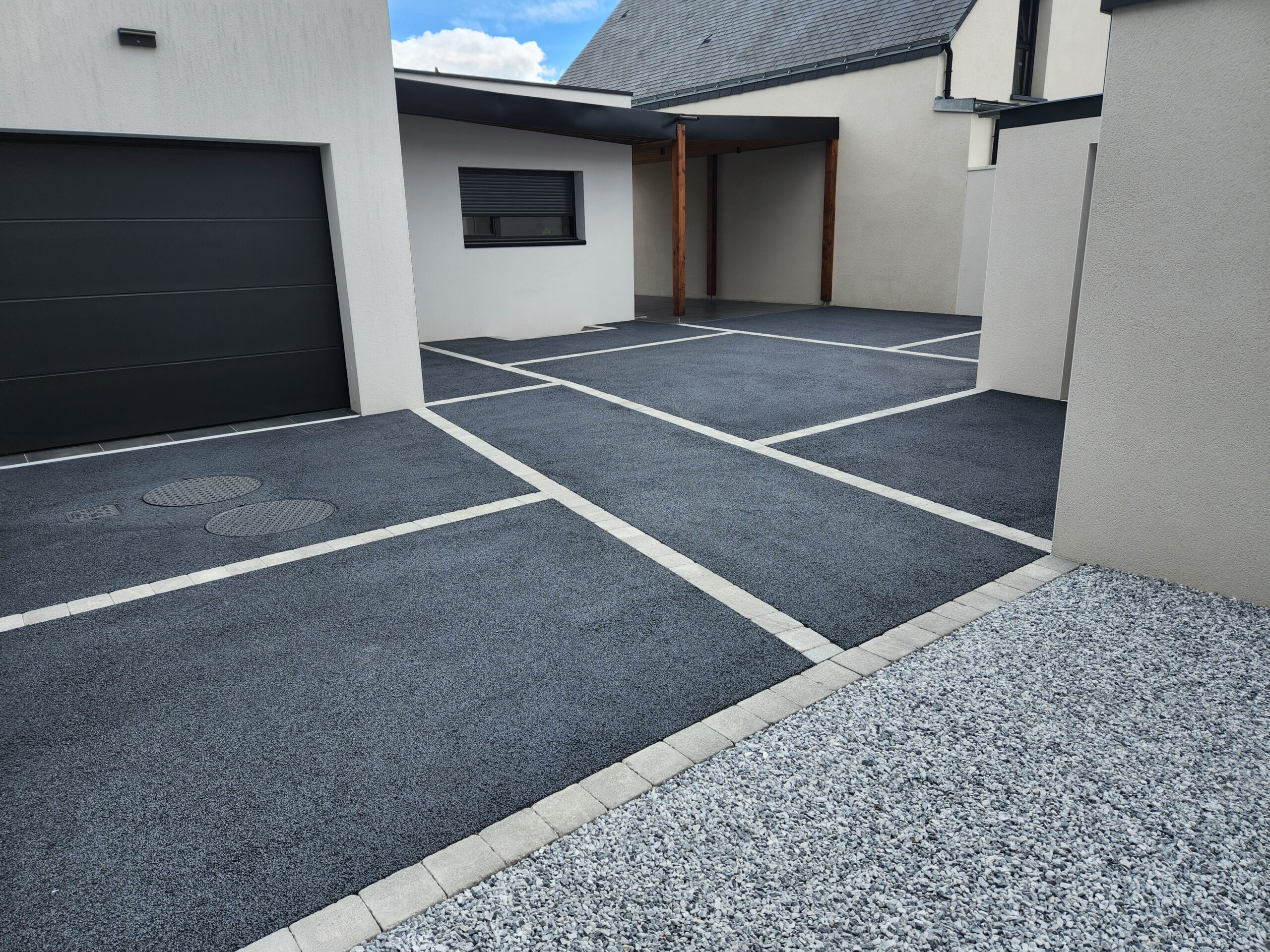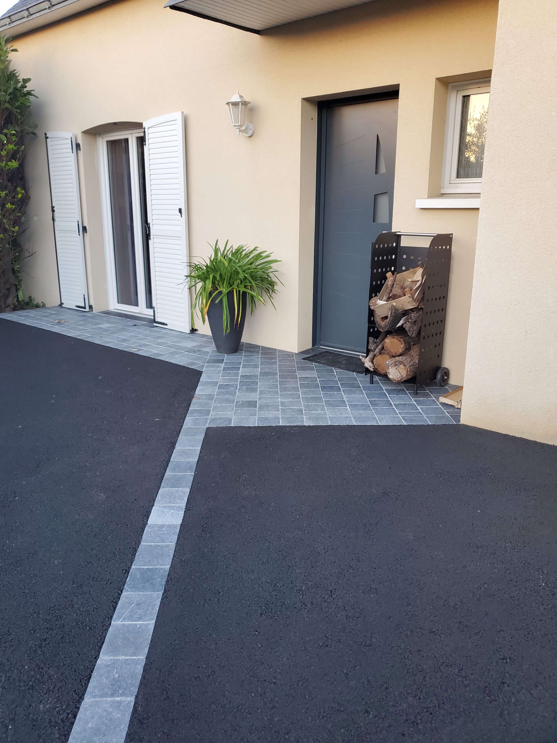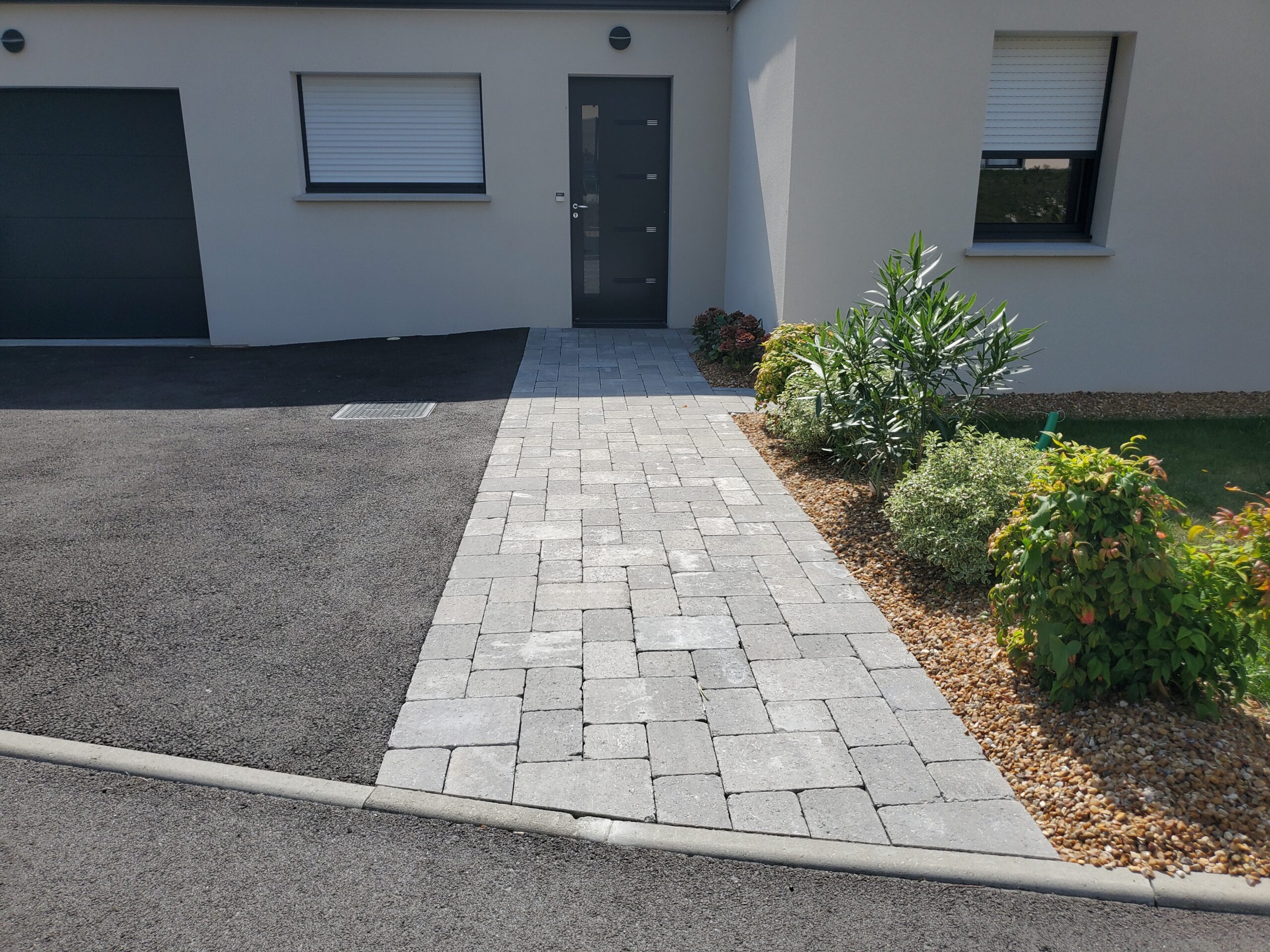 Réalisation d’un enrobé noir à chaud avec une entrée en pavés multiformats