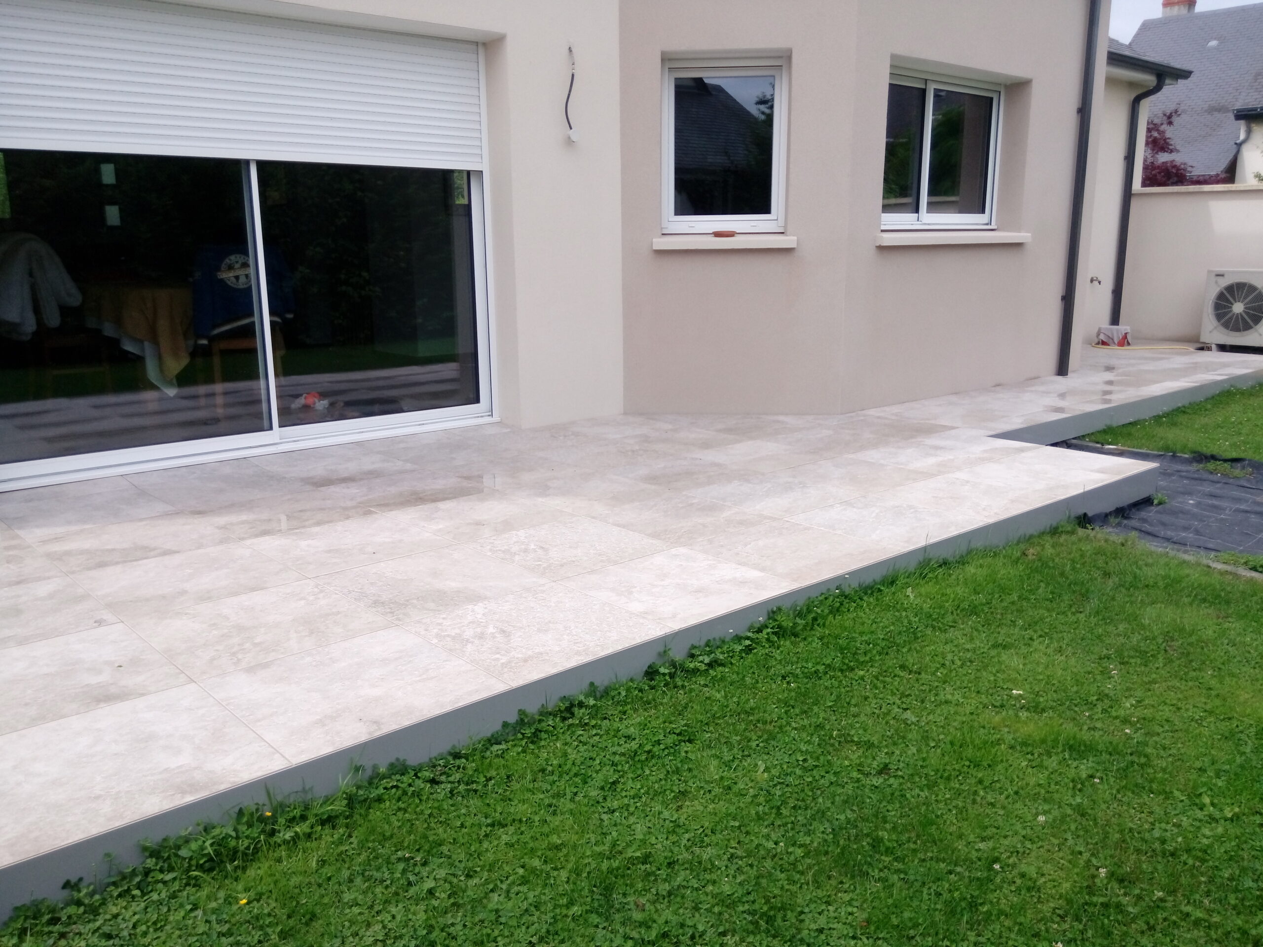 Réalisation d’une cour en béton poreux gris souris